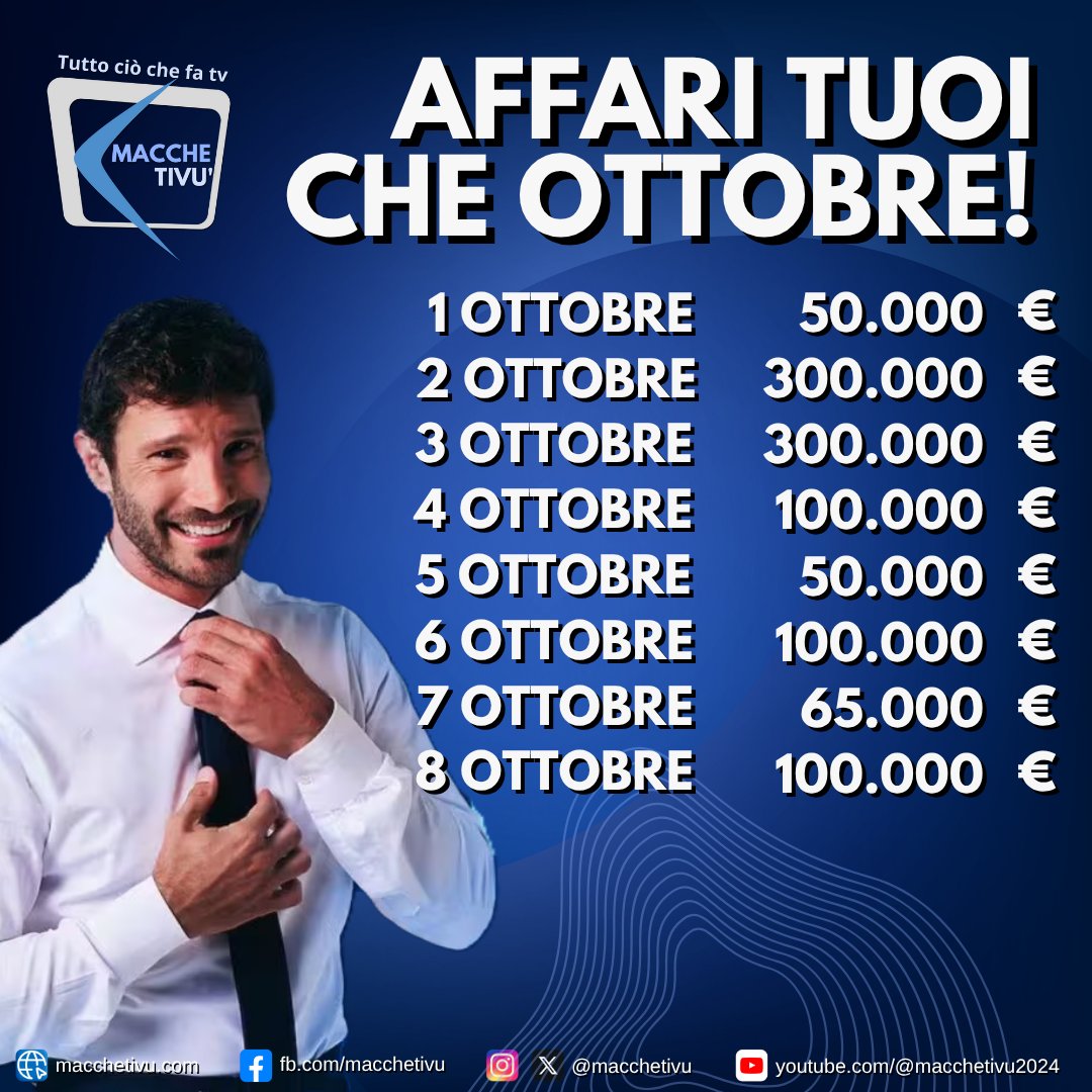 Ieri, mercoledì 8 ottobre, Stefano De Martino con Affari Tuoi ha battuto per la prima volta La Ruota Della Fortuna di Gerry Scotti e questa volta senza dover ricorrere alla sovrapposizione. Rai1, infatti, è stata seguita da 5.092.000 spettatori, pari al 24,5% di share; Canale 5, invece, ha raccolto davanti al video 5.035.000 spettatori pari al 24,2% di share. Entrambi i programmi sono iniziati alle 20:50 ed entrambi sono finiti alle 21:47.