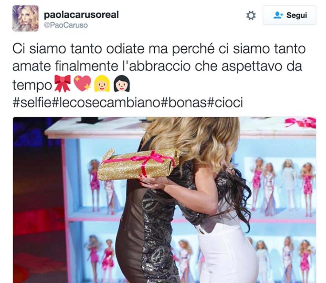 Quando le due si sono riviste a Selfie – Le Cose Cambiano qualche mese dopo, Paola Caruso accusò Alessia Macari di aver mentito sulla sua fobia per le Barbie, arrivando a darle della malata mentale. Al termine del percorso, però, le due si abbracciarono: “Ci siamo tanto odiate, ma perché ci siamo tanto amate. Finalmente l’abbraccio che aspettavo da tempo”.