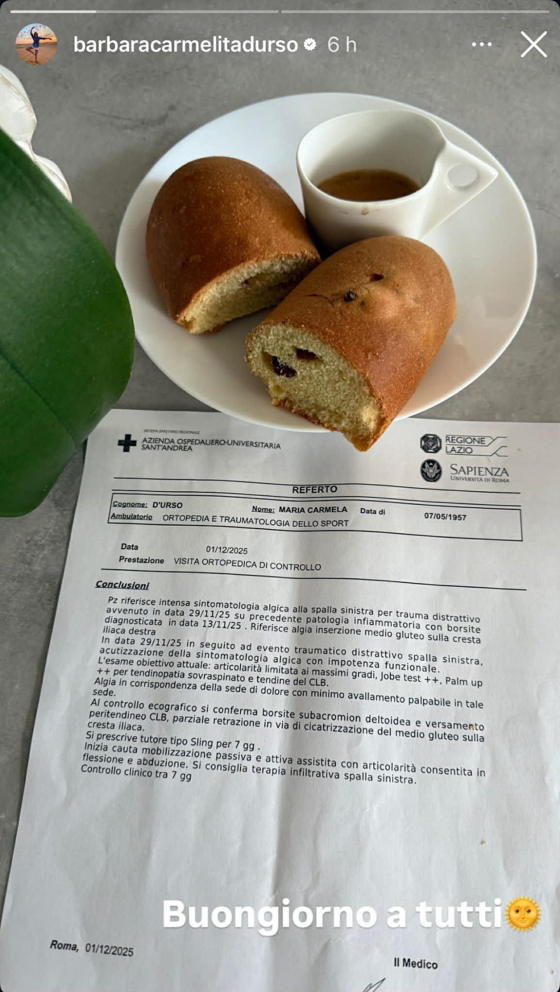 Dopo un controllo ortopedico i medici hanno confermato che si tratta di un’infiammazione importante, con borsite e tendini irritati. Una situazione che le impedisce perfino di alzare il braccio senza provare un dolore acuto. Per questo motivo per ora dovrà indossare un tutore per una settimana e muovere la spalla con molta delicatezza. Le è stato anche consigliato del riposo e di fare delle infiltrazioni per ridurre l’infiammazione, ma nonostante questo lei ha già annunciato che sabato sera ci sarà a Ballando con le Stelle.