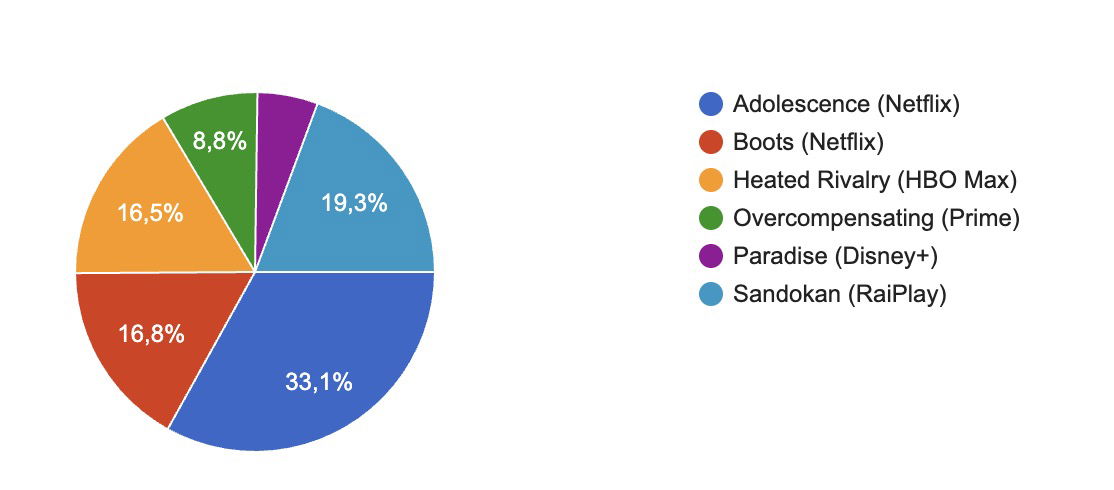 La categoria MIGLIOR CONCORRENTE è stata vinta da Barbara d’Urso a Ballando con le Stelle, seguita da Giuseppe Giofrè a The Traitors Italia e poi da Valeria Marini a Ne Vedremo Delle Belle. Il premio per la MIGLIOR SERIE è andato invece ad Adolescence (disponibile su Netflix) seguita da Sandokan e per una manciata di voti da Boots. Heated Rivalry incredibilmente fuori dal podio.