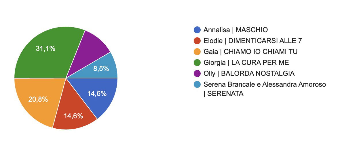 - Miglior singolo pop italiano: LA CURA PER ME (GIORGIA)