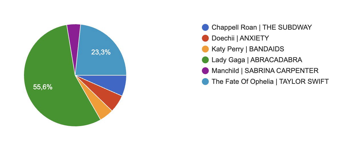 Annalisa, dopo due anni di dominio, ha perso nella categoria MIGLIOR SINGOLO POP ITALIANO dove invece ha trionfato La Cura Per Me di Giorgia, seguito da Chiamo Io Chiami Tu di Gaia. Al terzo posto un ex-equo: con il 14,6% di preferenze troviamo Dimenticarsi Alle 7 di Elodie e Maschio di Annalisa. La categoria MIGLIOR SINGOLO POP STRANIERO è invece stata stravinta da Abracadabra di Lady Gaga con il 55% delle preferenze. Secondo posto The Fate Of Ophelia di Taylor Swift e al terzo The Subway di Chappell Roan.