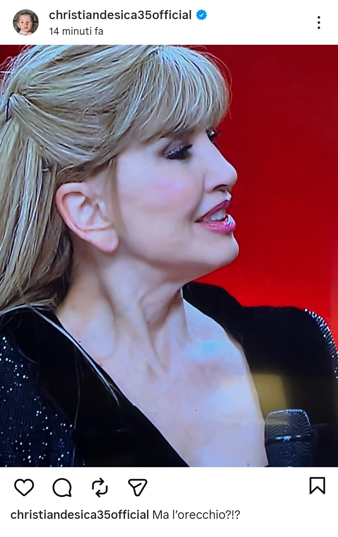 Quello che è successo è semplice, quanto brutto: l’attore ha pubblicato su Instagram una foto di profilo di Milly Carlucci, scattata alla tv e tratta dalla diretta di Ballando con le Stelle, accompagnandola con il commento sarcastico «Ma l’orecchio?!?», apparentemente uno sfottò riferito al suo aspetto fisico e al lobo ritenuto a quanto pare anomalo.
