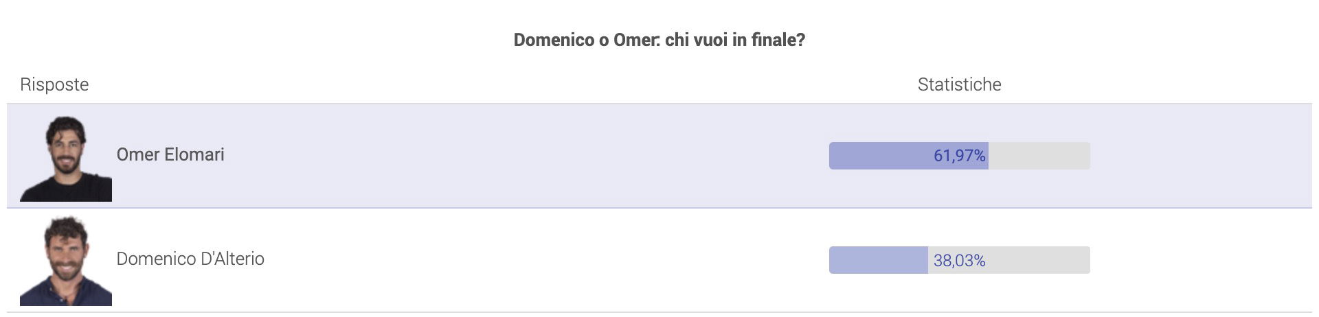 Domenico o Omer, eliminato e finalista del GF: risultati dei sondaggi