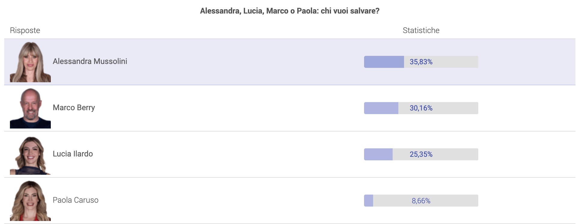 Eliminato del GF Vip tra Marco, Paola, Lucia e Alessandra: risultati dei sondaggi