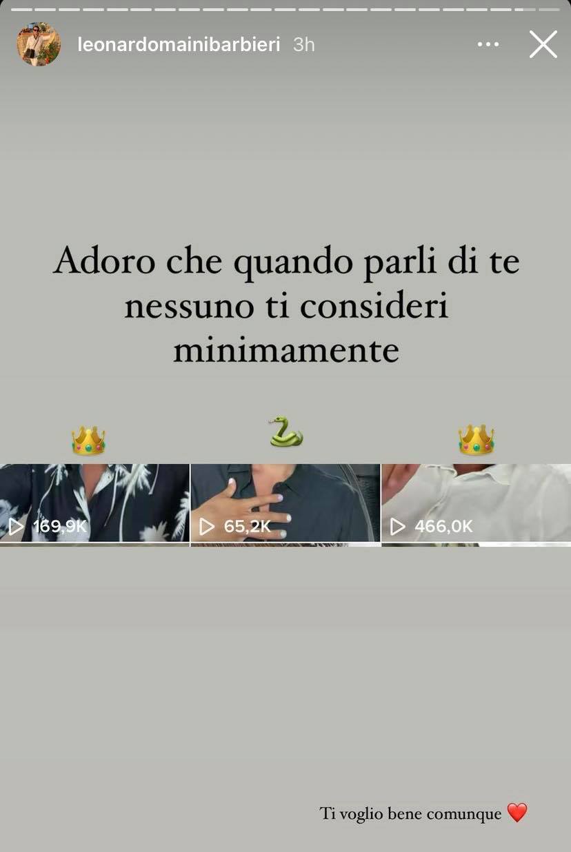 Anche di recente Giacomo è tornato a punzecchiare Leonardo, mettendo sotto la lente di ingrandimento una fanpage Instagram dedicata al collega TikToker, @WhatLeonardoWears, accusando Maini Barbieri di essersela creata da solo.