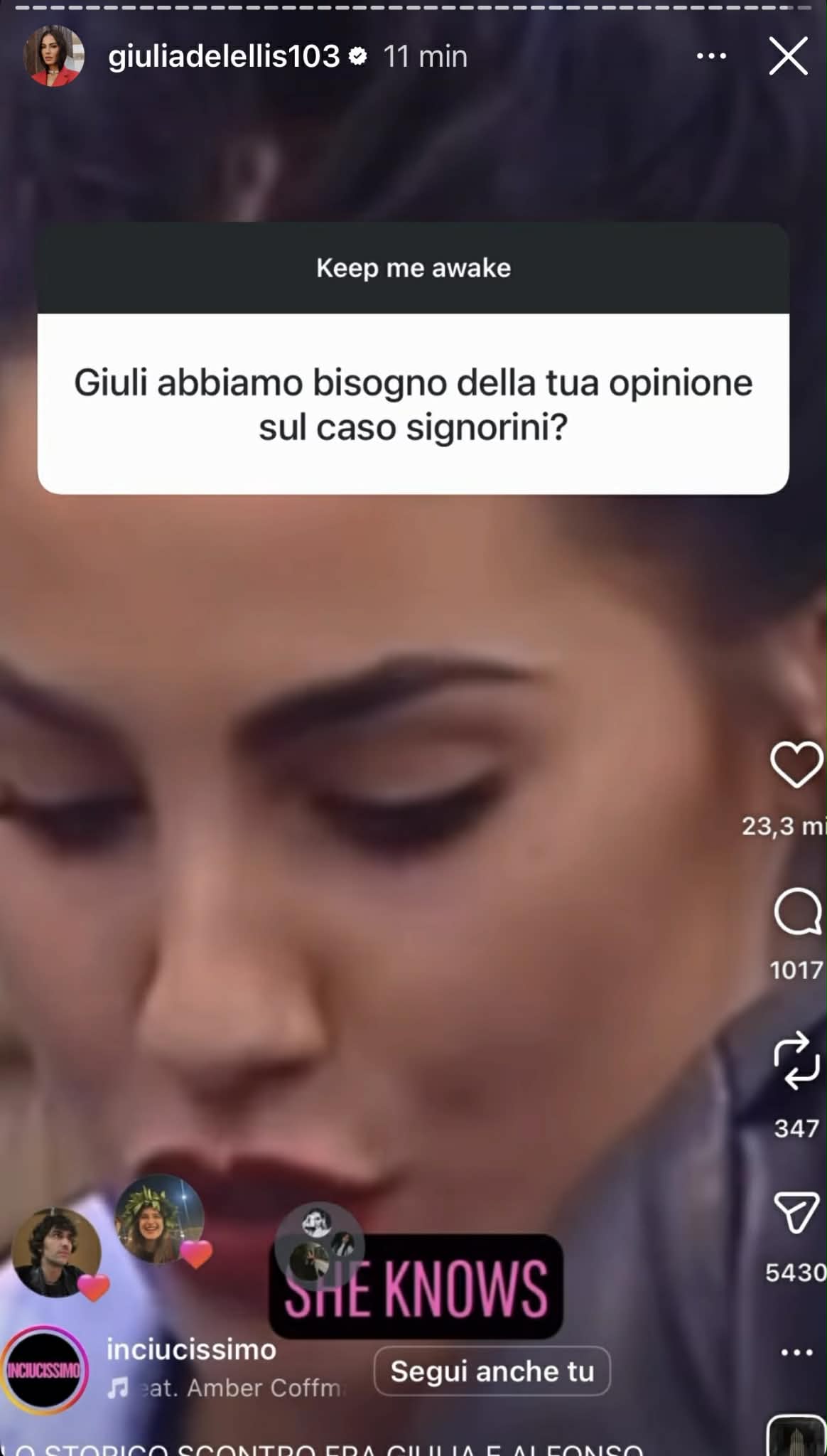 A quanto pare, nonostante siano passati 8 anni, il rapporto fra i due non si è mai ricucito perché, approfittando del box Domande & Risposte con i fan su Instagram, Giulia De Lellis a domanda diretta: “Abbiamo bisogno della tua opinione sul caso Signorini?“, ha risposto con un video che risale proprio a uno dei suoi numerosi scontri con Alfonso Signorini in cui dice: “Rimango in silenzio perché sono una ragazza molto educata e ringrazio i miei genitori per questo“, sulle note di She Knows, brano di J.Cole che è tornato virale quando è esploso il caso Diddy, ovvero “lei sa”.