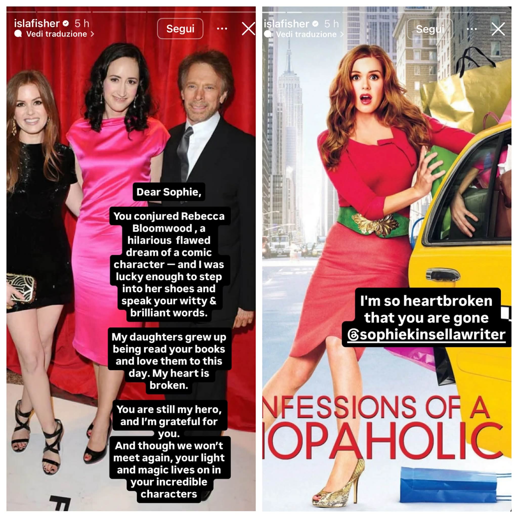 Ieri, a causa di un tumore al cervello, Sophie Kinsella è venuta a mancare circondata dai suoi affetti e Isla Fisher l’ha così ricordata sui social. “Cara Sophie, hai dato vita a Rebecca Bloomwood, un sogno comico di personaggio, esilarante e pieno di imperfezioni — e io sono stata abbastanza fortunata da poter entrare nei suoi panni e pronunciare le tue parole argute e brillanti. Le mie figlie sono cresciute leggendo i tuoi libri e li amano ancora oggi. Ho il cuore spezzato. Sei ancora la mia eroina e ti sono grata. E anche se non ci incontreremo di nuovo, la tua luce e la tua magia vivranno nei tuoi incredibili personaggi. Sono così devastata dal dolore che tu non ci sia più“. Il protagonista maschile del film, ovvero l’attore Hugh Dancy che ai tempi interpretò Luke Brandon, non usa i social e almeno pubblicamente non ha scritto niente su Sophie Kinsella.