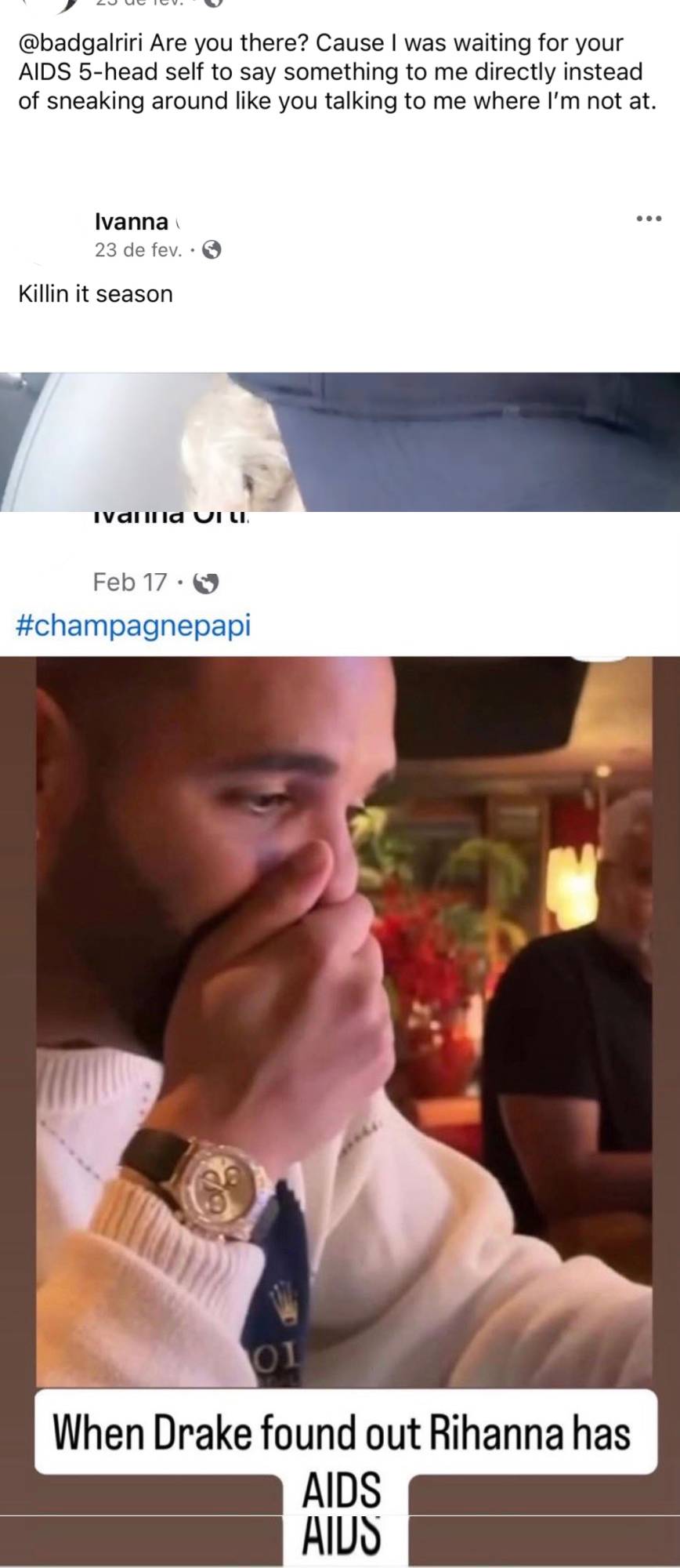 Intanto sui social stanno circolando presunti post Facebook di Ivanna Lisette Ortiz. In uno datato 24 febbraio 2026 si legge: “Rihanna, ci sei? Perché stavo aspettando che la tua faccia con quella fronte enorme venisse a dire qualcosa direttamente a me, invece di girarci intorno come se stessi parlando di me in posti dove io non ci sono“. A cui è seguito un altro post: “Killin it season”. Su questo profilo Facebook c’è anche una foto scattata probabilmente a un poligono di tiro in cui si vede un’arma da fuoco.