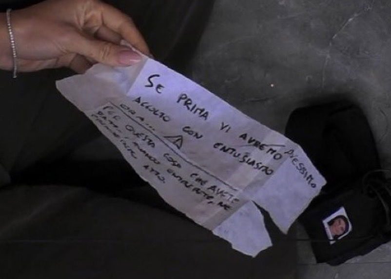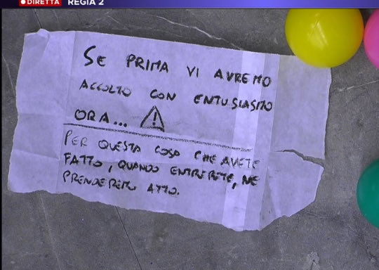 Per comunicare con i tuguriati, i casalinghi di Simona Ventura hanno deciso di scrivere dei bigliettini da far passare sotto la porta. Il primo a scriverlo è stato Jonas, con un messaggio minatorio dopo aver subìto un furto di provviste da parte dei tuguriati. Insomma, un classicone del Grande Fratello. “Se prima vi avremo accolto con entusiasmo, ora… Per questa cosa che avete fatto, quando entrerete, ne prenderemo atto“. Il bigliettino sgrammaticato è stato letto da Rasha che glielo ha rimandato indietro in versione “correggiuta”. Ovvero: “Se prima vi avessimo accolto con entusiasmo, ora… Per questa cosa che avete fatto, quando entrerete, ne prenderemo atto“. Il fallimento della scuola italiana. “AVREMMO“, non piaceva proprio a nessuno?