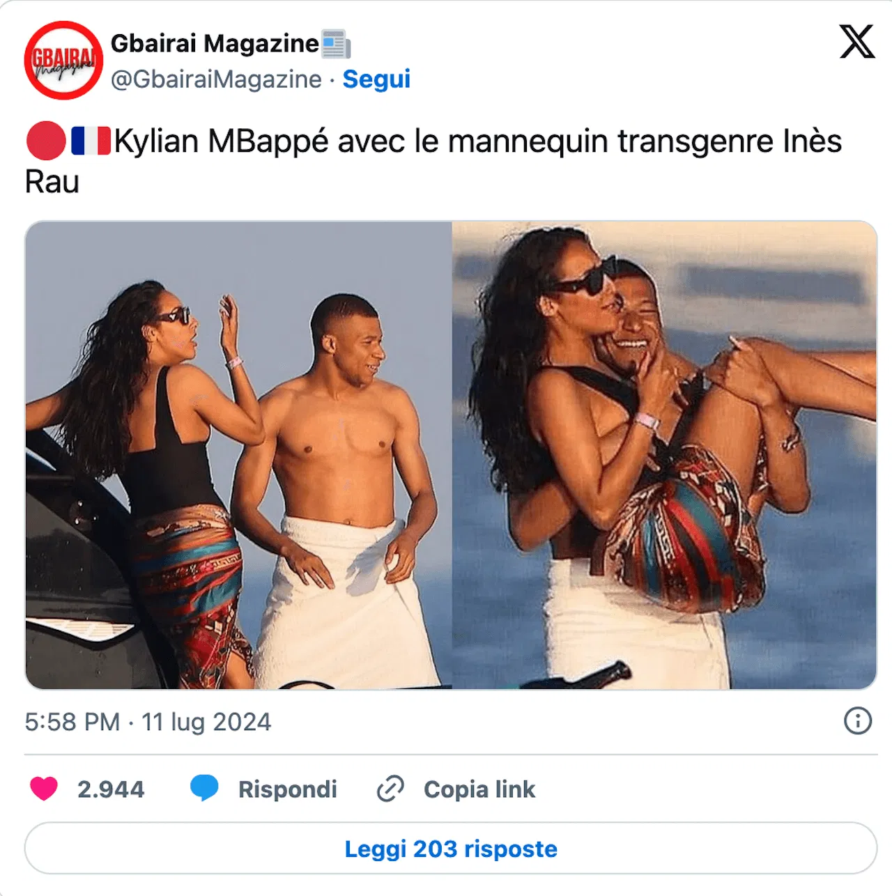 Kylian Mbappé è una stella del Real Madrid e nonostante sia molto riservato, pare che dal 2022 viva una storia d’amore con Ines Rau, modella franco-algerina diventata famosa in tutto il mondo per essere stata la prima ragazza transgender a finire sulla copertina di Playboy nel novembre del 2017. E proprio questa relazione è finita nel mirino degli sfottò di José Luis Chilavert, ex portiere, che nel commentare un recente fatto calcistico ha dato del ‘travestito’ alla Rau.