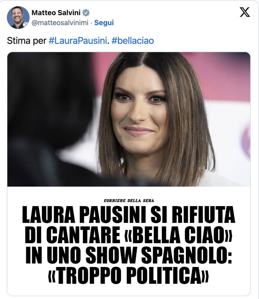 Accortasi che il dibattito sul rifiuto di cantare Bella Ciao stava continuando a tenere banco sui media, Laura Pausini il 15 settembre 2022 è intervenuta con un comunicato ufficiale, dove ha dichiarato di ripudiare il fascismo (così come tutte le altre dittature).