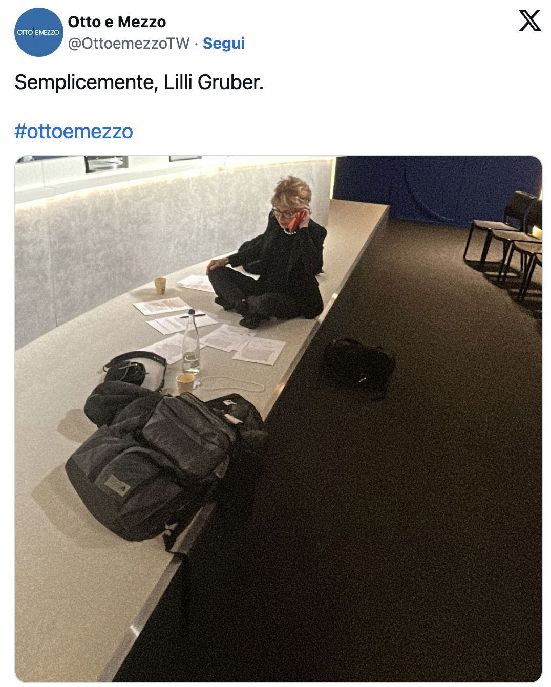 Al rientro dal break pubblicitario però la conduttrice non c’era più, al suo posto la giornalista Lina Palmerini, nello studio di Otto e Mezzo, al tavolo insieme al direttore de Il Fatto Quotidiano Marco Travaglio e il banchiere e dirigente d’azienda, Franco Bernabè. La Palmerini ha subito spiegato la situazione di emergenza al pubblico.