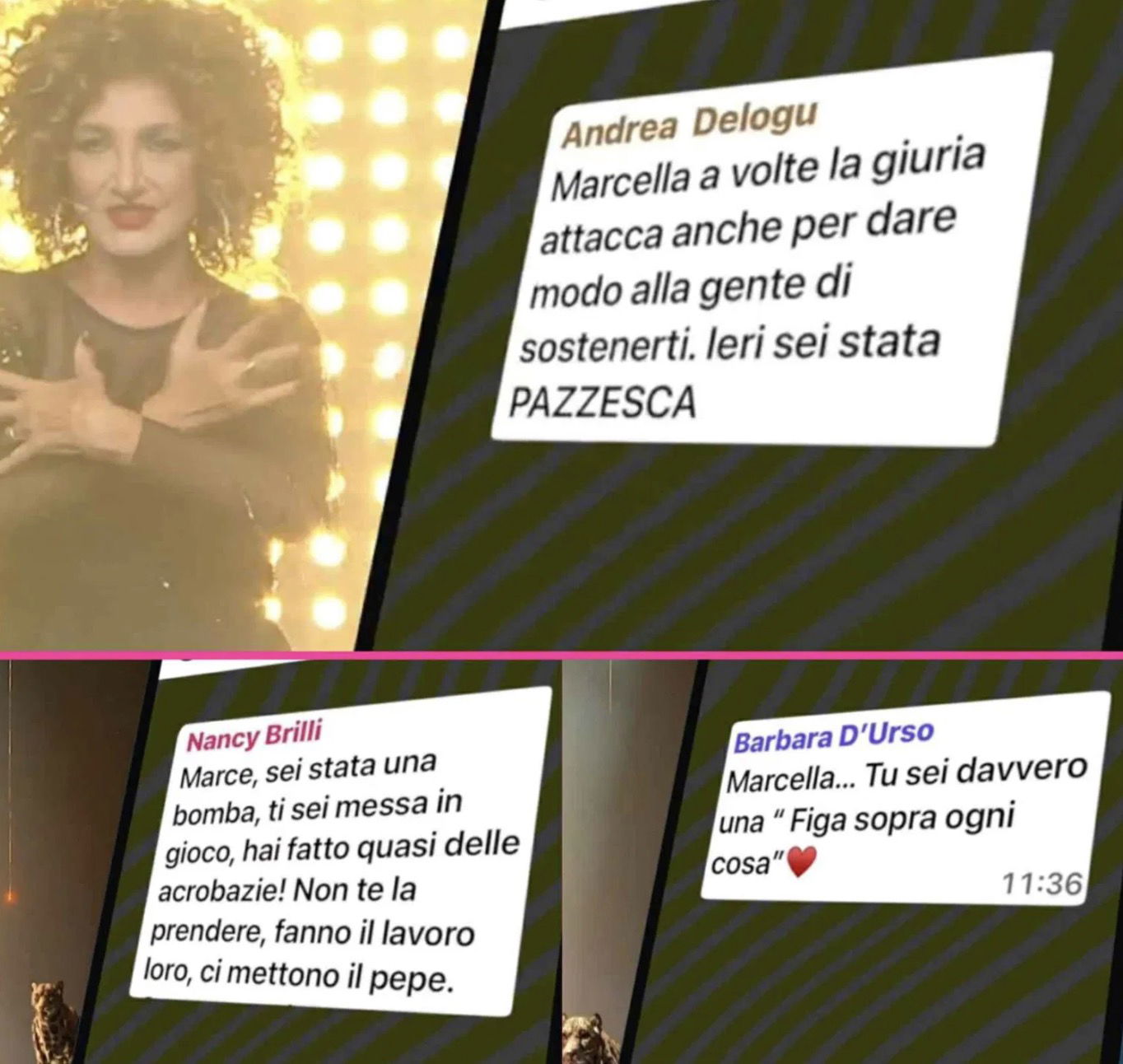 Nell’ultima puntata di Bar Centrale, Elisa Isoardi ha mandato in onda una clip in cui Marcella Bella ha punzecchiato Barbara d’Urso: “Io mi auguro solo una cosa, di non essere sempre io quella… che i giurati si spostino verso la signora d’Urso, che lei è sempre così, tutta ferma. E smuovetela un po’ un attimo! Cavolo, è napoletana questa qui. Ditegli qualcosa che la fa smuovere. Sempre con me ce l’hanno?! Eh che cavolo, lei è sempre tutta composta. Sì, così, zitta, ferma, non fa niente. Certe volte mi viene voglia di pungerla, di darle un pizzicotto e dirle “ma sei viva Barbara?”. Lei è sempre così scioccata probabilmente, è traumatizzata da tutto quello che le è successo. Però sempre così… che cavolo“.