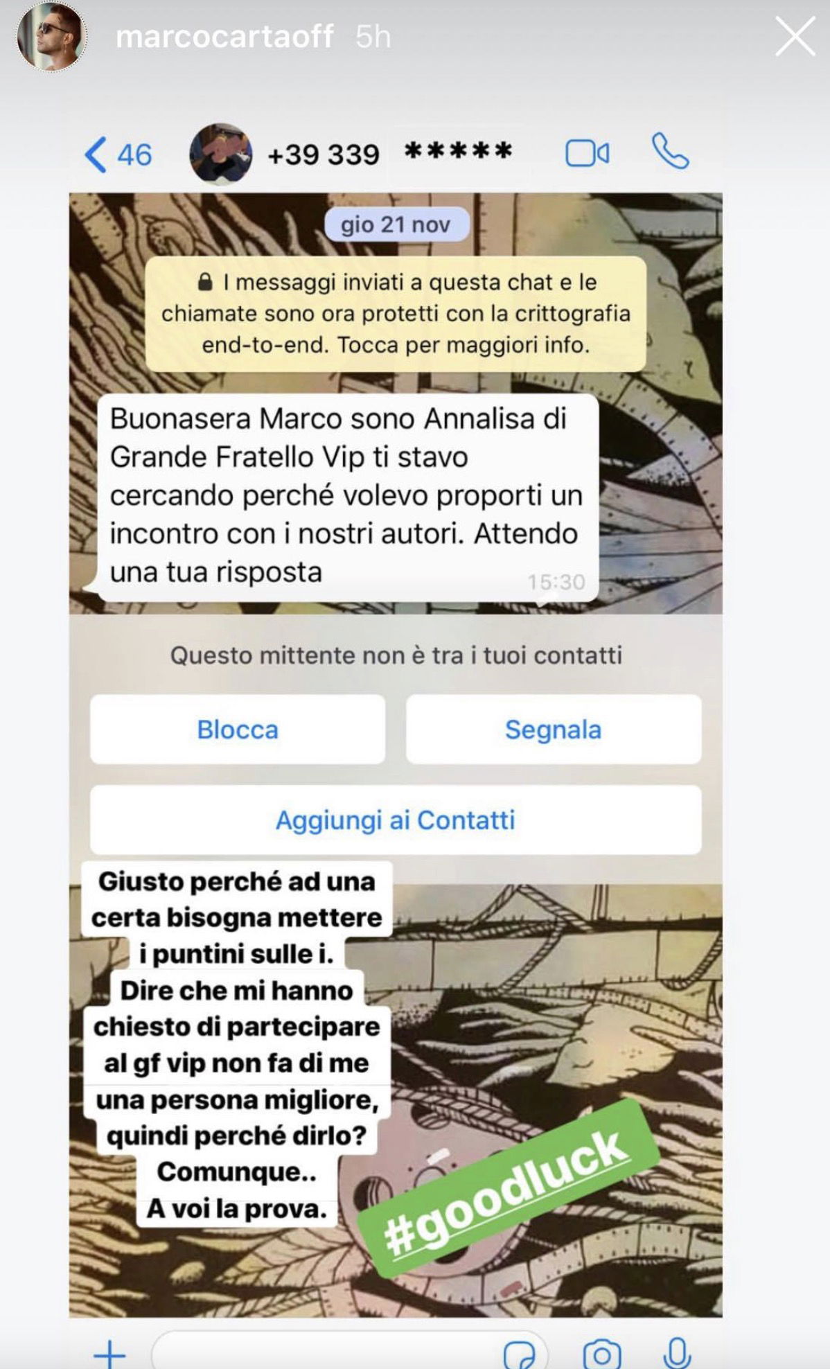 Le parole di Alfonso hanno portato a qualche presa in giro sui social e così l’artista sardo ha reagito condividendo il messaggio di un’autrice del GF Vip che l’aveva cercato.