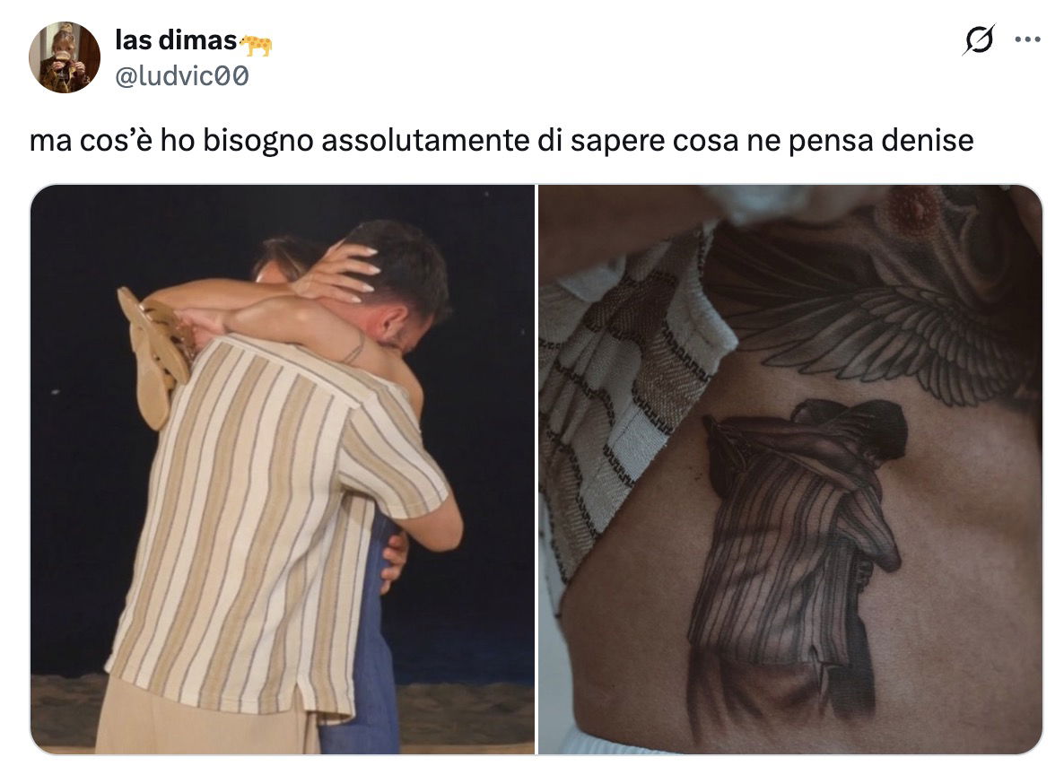 Ora l’edizione di Temptation Island è ufficialmente finita e a distanza di mesi Marco Raffaeli è tornato a parlare della sua storia condividendo sui social l’immagine di un tatuaggio che raffigura un tenero abbraccio scambiato con la sua ex Denise Rossi durante uno dei loro confronti. E sì, ha fatto tatuare tutto, pure le ciabatte che lei teneva in mano.