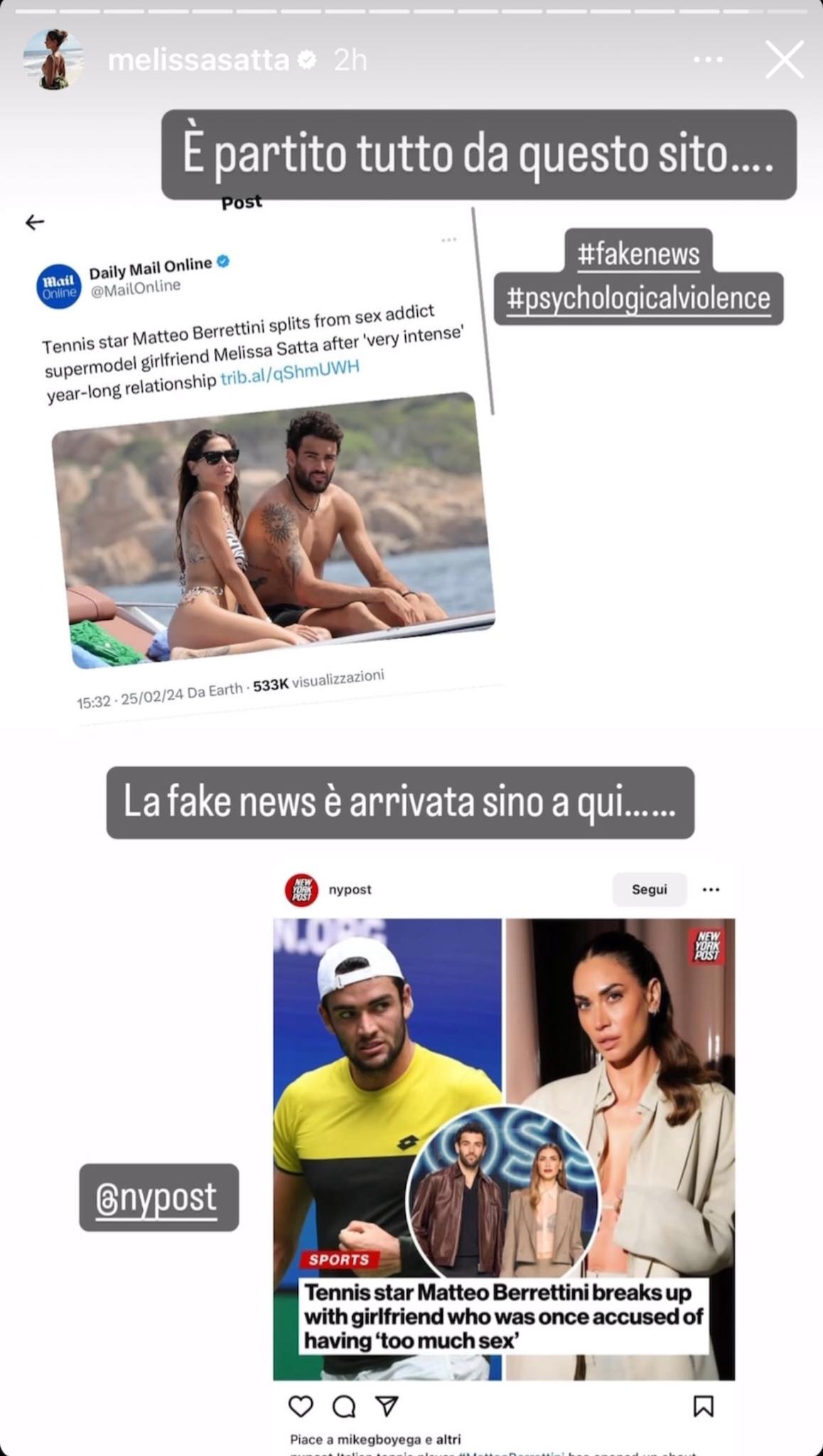 “La stella del tennis Matteo Berrettini e la fidanzata supermodel dipendente dal s3sso Melissa Satta si lasciano dopo un anno ‘molto intenso’ di relazione”: questo il titolo incriminato. Un titolo che è stato ripreso anche da altri siti rendendo di fatto la notizia virale.