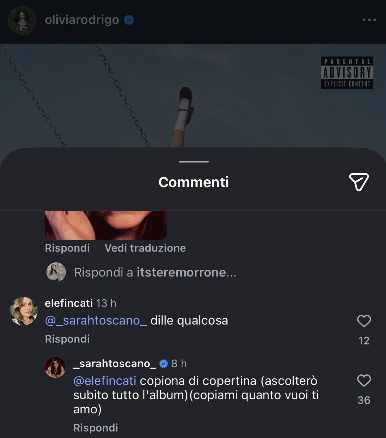 La popstar americana ha presentato il disco pubblicando la cover e scrivendo: “Il mio terzo album You Seem Pretty Sad For a Girl So in Love esce il 12 giugno. Sono davvero orgogliosa di questo lavoro e non vedo l’ora che possiate ascoltarlo. È già disponibile in pre-order!”. Un annuncio che ha immediatamente generato migliaia di interazioni. Tra i tanti un utente ha scritto “Dille qualcosa”, taggando proprio Sarah Toscano. Il riferimento, piuttosto evidente, era a una presunta somiglianza tra la copertina del nuovo album di Olivia e quella di Amarcord di Sarah.