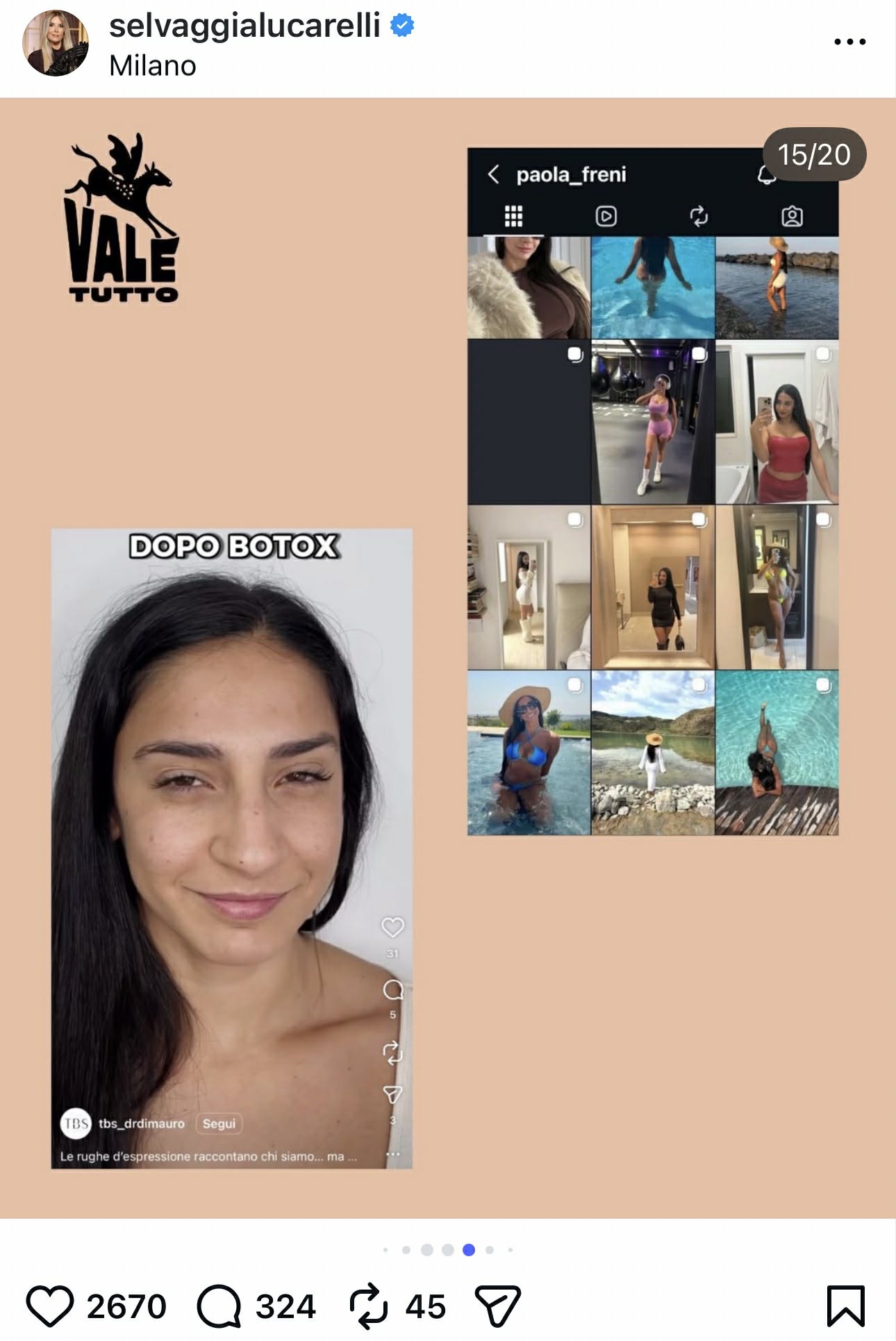 Secondo quanto scritto da Selvaggia Lucarelli, Paola Freni sarebbe una trentenne che sui social della pagina dell’associazione si mostrerebbe come una ragazza semplice e acqua e sapone (“sempre in tuta e occhiali“) perennemente preoccupata per le spese mostruose da sostenere per la cura dei gatti. Sul suo profilo privato, invece, apparirebbe un po’ diversa. Queste le parole pubblicate nell’anteprima social della newsletter ValeTutto: “Il profilo privato di Paola Freni mostra una ragazza completamente diversa da quella di Casa Speranza. Appariscente, con foto di vacanze a Cervinia per sciare, Malta, Pantelleria, gite in barca, foto della macchina nuova acquistata e, soprattutto, molta chirurgia plastica. Paola si è ritoccata naso, seno, sul web si trovano anche video di specialisti che le iniettano il botox. Uno stile di vita agiato che pare molto lontano da quello della ragazza sempre preoccupata per le spese e per il futuro dei suoi gatti“.