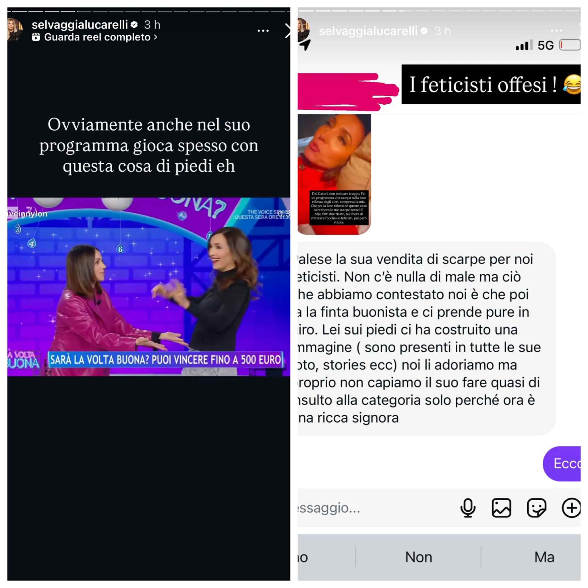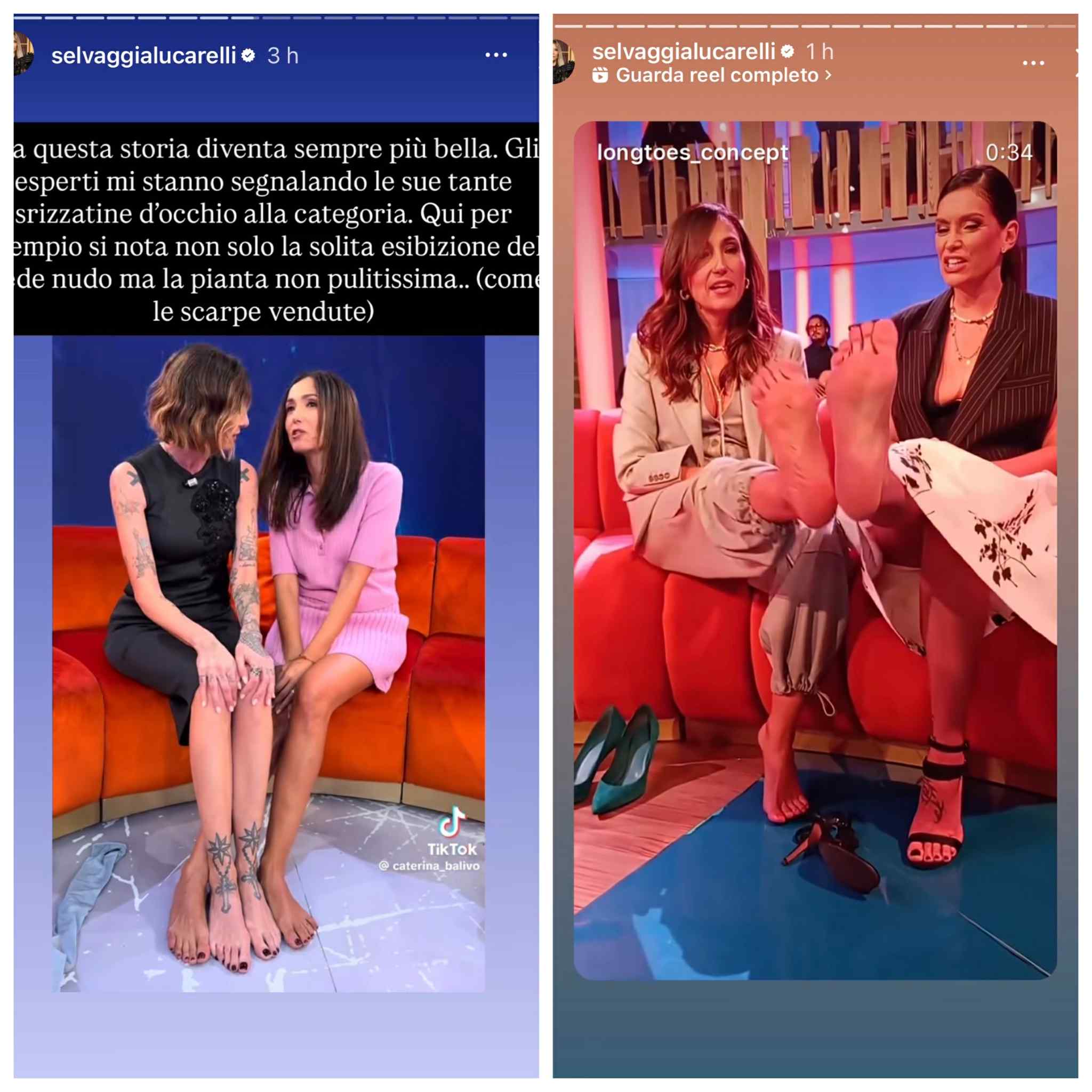 Una presunta frecciatina a cui Selvaggia Lucarelli ha deciso di rispondere. “Dai Caterì, non rosicare troppo. Fai un programma che campa sulla luce riflessa degli altri, compresa la mia. Che poi la luce riflessa in questo caso sarebbero le tue scarpe zozze? E daje, fatti due risate, sei libera di strizzare l’occhio ai feticisti, poi però stacce“. A questo hanno fatto seguito una serie di storie e video in cui Selvaggia Lucarelli mostra come Caterina Balivo, secondo lei, più volte nel corso degli anni avrebbe strizzato l’occhio al mondo dei feticisti.