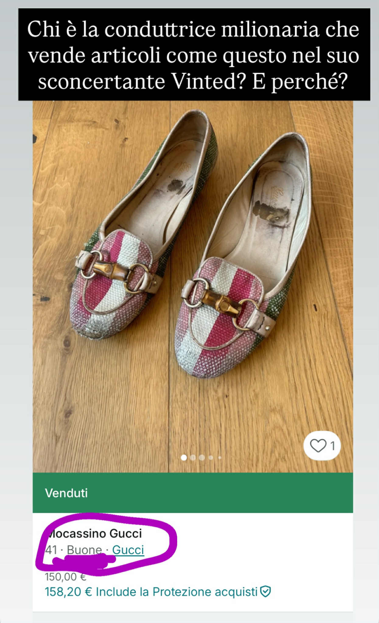 A finire nel mirino di Selvaggia Lucarelli non sono stati però i forum e le pagine social dedicate ai piedi di Caterina Balivo, ma il suo profilo Vinted in cui ha caricato e venduto a 150 euro un paio di scarpe Gucci completamente distrutte. “Chi è la conduttrice milionaria che vende articoli come questo nel suo sconcertante Vinted? E perché?”