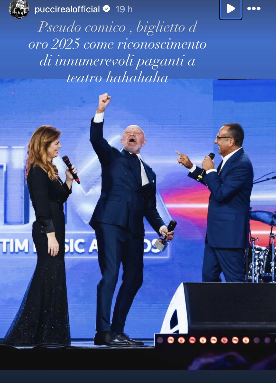 Invece di replicare con ironia, Andrea Pucci ieri sera ha pubblicato una storia Instagram in cui ha ricordato di aver vinto il ‘biglietto d’oro’, per il grande numero di spettatori del suo tour: “Pseudo comico, biglietto d’oro 2025 come riconoscimento di innumerevoli paganti a teatro hahahaha. Mai temuto niente e nessuno porterò avanti le mie idee giuste o sbagliate che siano, mai sceso a compromessi e mai scenderò“. Il cabarettista ha anche pubblicato una foto del co-conduttore de La Pennicanza, Fabrizio Biggio: “Se non ridi e se non dici sempre sì, ti licenzio ahahhahahahhahah poverini“.