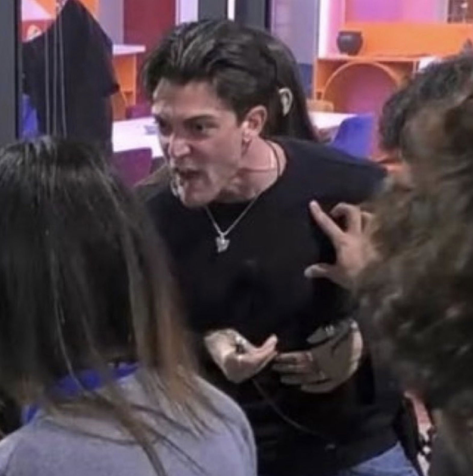 Mentre Omer stava minimizzando la sua scenata con i pantaloni calati, Jonas è intervenuto e gli ha puntato il dito contro: “Quel gesto significa che se tu lo fai fuori chiamano la polizia e ti portano in galera. Sai cosa significa? L’hai capito sì o no? Se tu ti abbassi le mutande in pubblico, succede un casino e non si fa“. Il modello romano ha poi cominciato a gridare ed è stato trattenuto da alcuni compagni, così Omer si è avvicinato e ha perso la calma: “Non urlare come un cane! Non urlare con me, hai capito bambino?!”. Rasha ha tentato di tappare la bocca al suo compagno, ma non c’è riuscita, così è entrato in scena Mattia Scudieri, che ha placcato l’amico (qui il video completo). La regia ha preferito cambiare inquadratura, per evitare che la situazione già molto tesa degenerasse in uno scontro fisico.