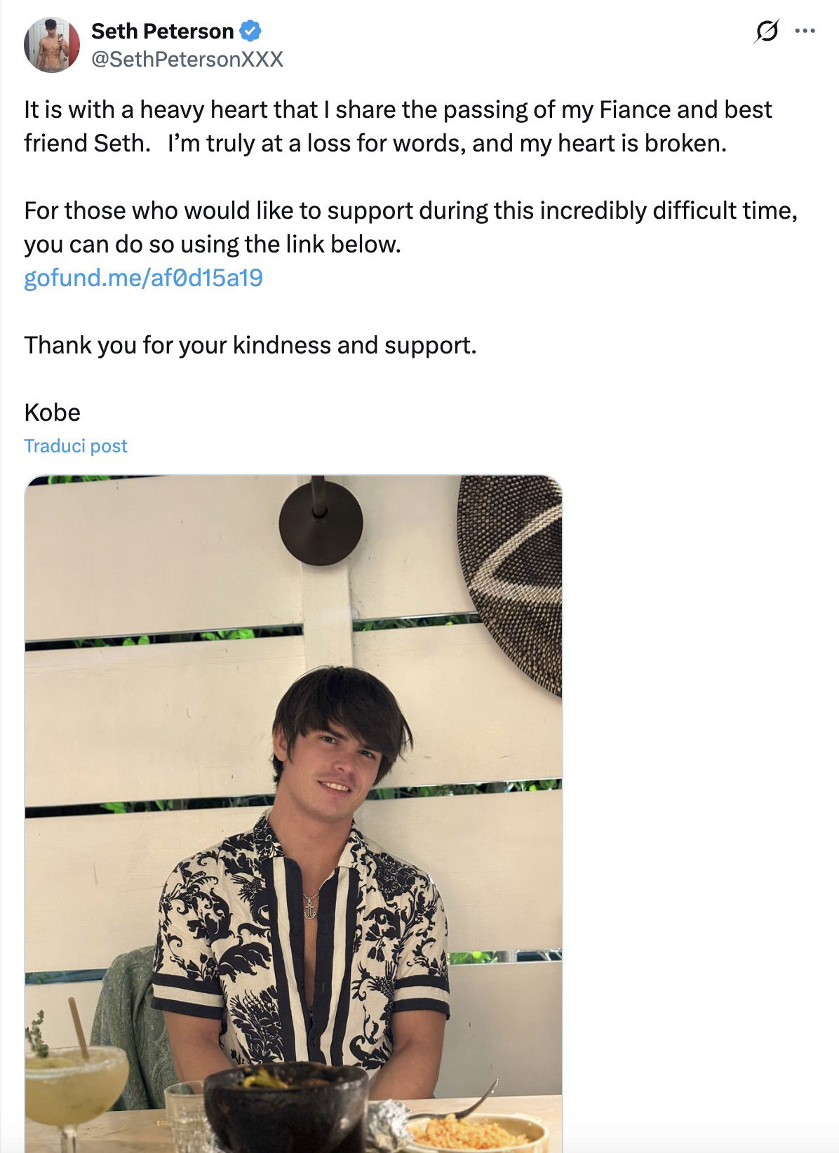 Kobe Marsh ha inoltre fatto sapere che è stata avviata una raccolta fondi su GoFundMe per coprire le spese del funerale e offrire ulteriore supporto. Nella descrizione della raccolta si legge: “Seth è stato trovato nella nostra casa oggi. Era profondamente amato e ci mancherà moltissimo”. Al momento non sono stati diffusi ulteriori dettagli sulle cause della morte e, alla pubblicazione, Kobe non ha condiviso altri messaggi sui propri profili social. Al momento, quindi, restano da chiarire le dinamiche di questa scomparsa.