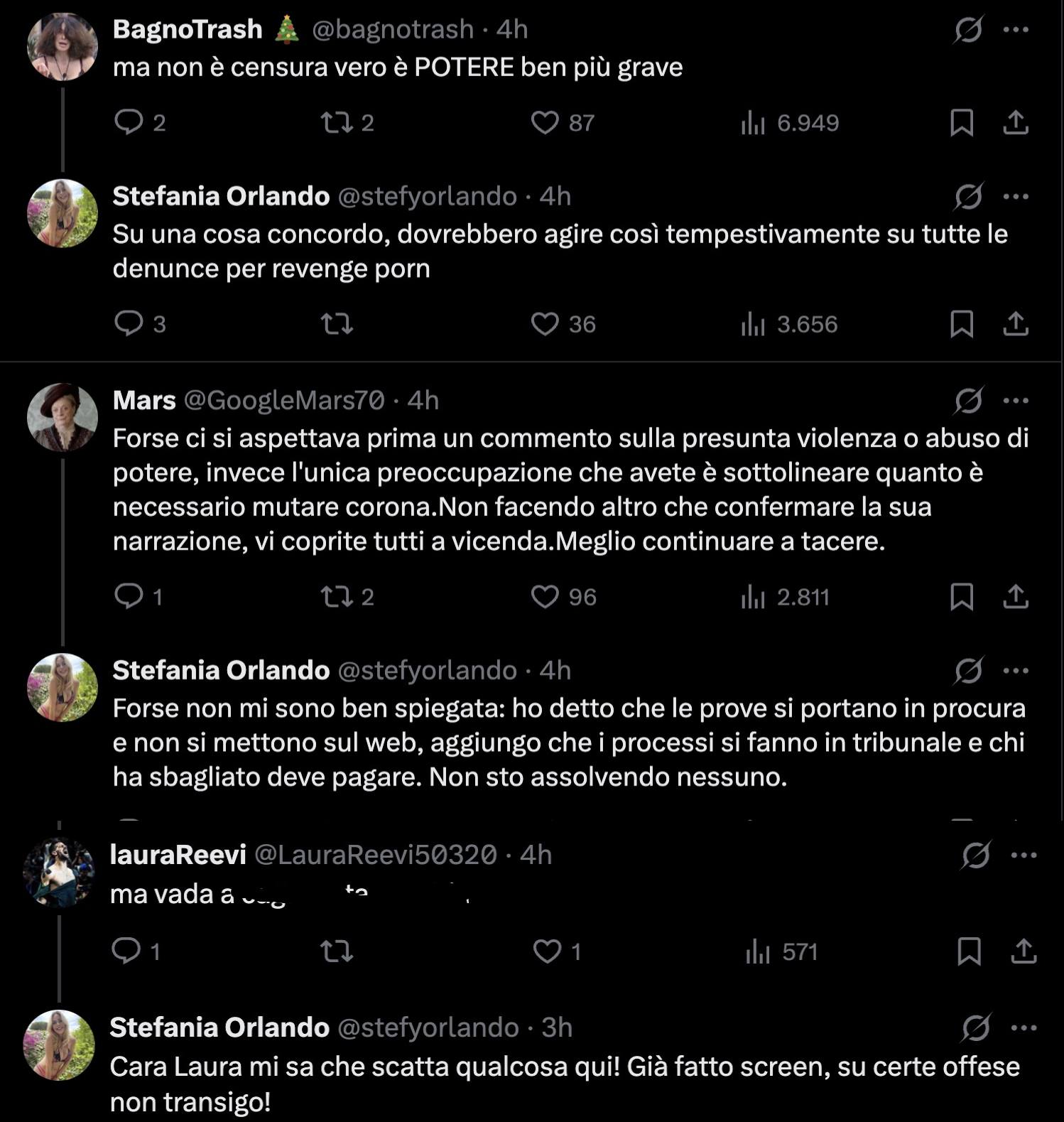 Direi che Stefania Orlando è stata chiara, la sua non è una difesa per Signorini, né una condanna per Corona, ma solo una presa di posizione sulla campagna d’odio social e la gogna pubblica scatenata da Falsissimo. Nelle storie Instagram e sui post su X c’è scritto chiaramente che se “qualcuno ha sbagliato dovrà pagare”.